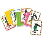 Quel coquet, ce Loup ! Chaque jour de la semaine, il se pare d’un nouvel accessoire… Trouve le plus rapidement possible l’image sur laquelle il porte les deux accessoires de couleur correspondant à ta carte et à celle d’un autre joueur afin de remporter le plus de cartes ! Un jeu d’observation et de rapidité !