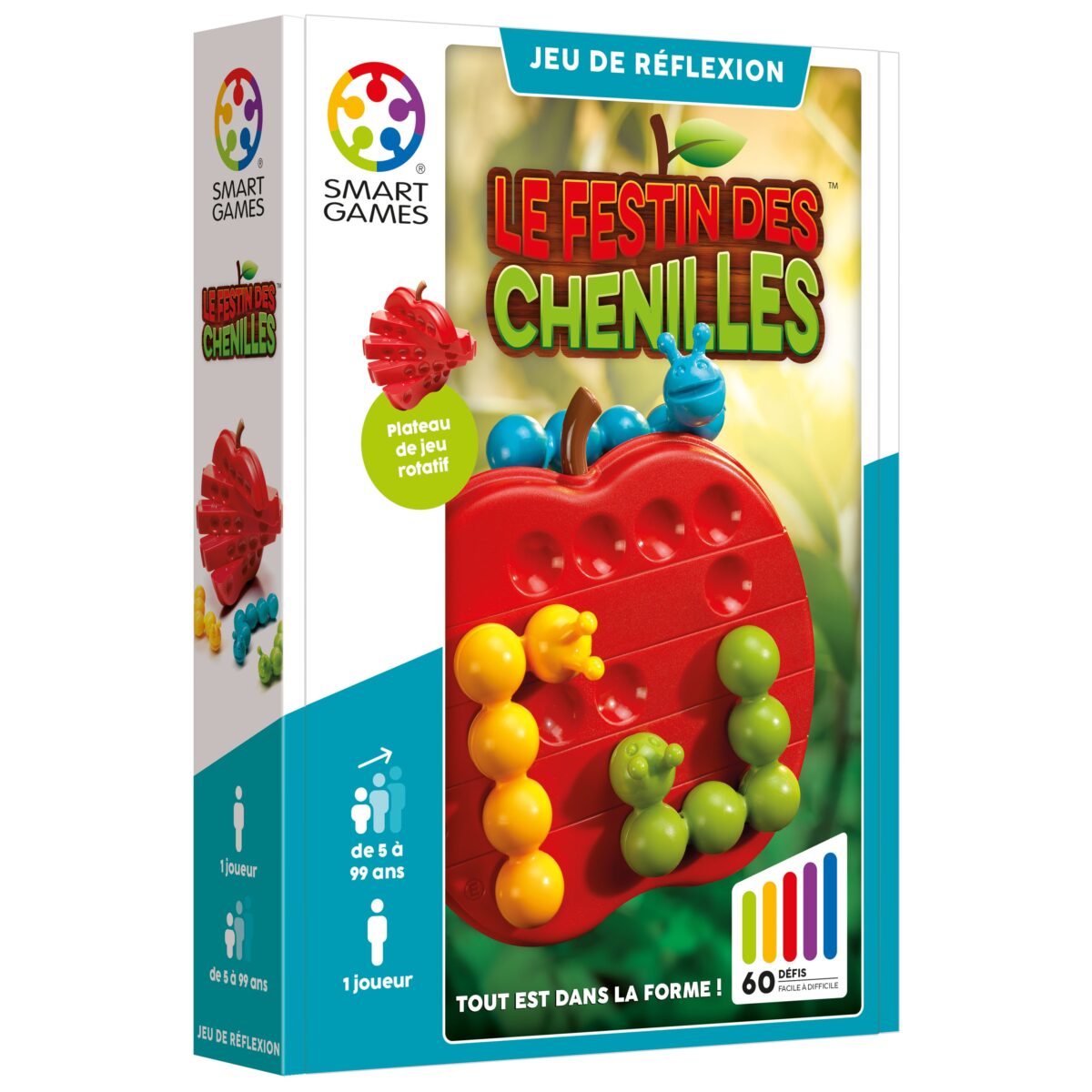 Trois chenilles très gourmandes ont décidé de faire un festin d’une pomme juteuse. Saurez-vous toutes les faire tenir à l’intérieur du fruit afin de leur assurer un garde-manger ? «Le festin des chenilles» contient un plan de jeu interchangeable innovant ainsi que trois pièces de jeu que vous pourrez couder pour obtenir des formes originales. Votre logique se devra d’être flexible pour résoudre les soixante défis du jeu, de facile à expert.