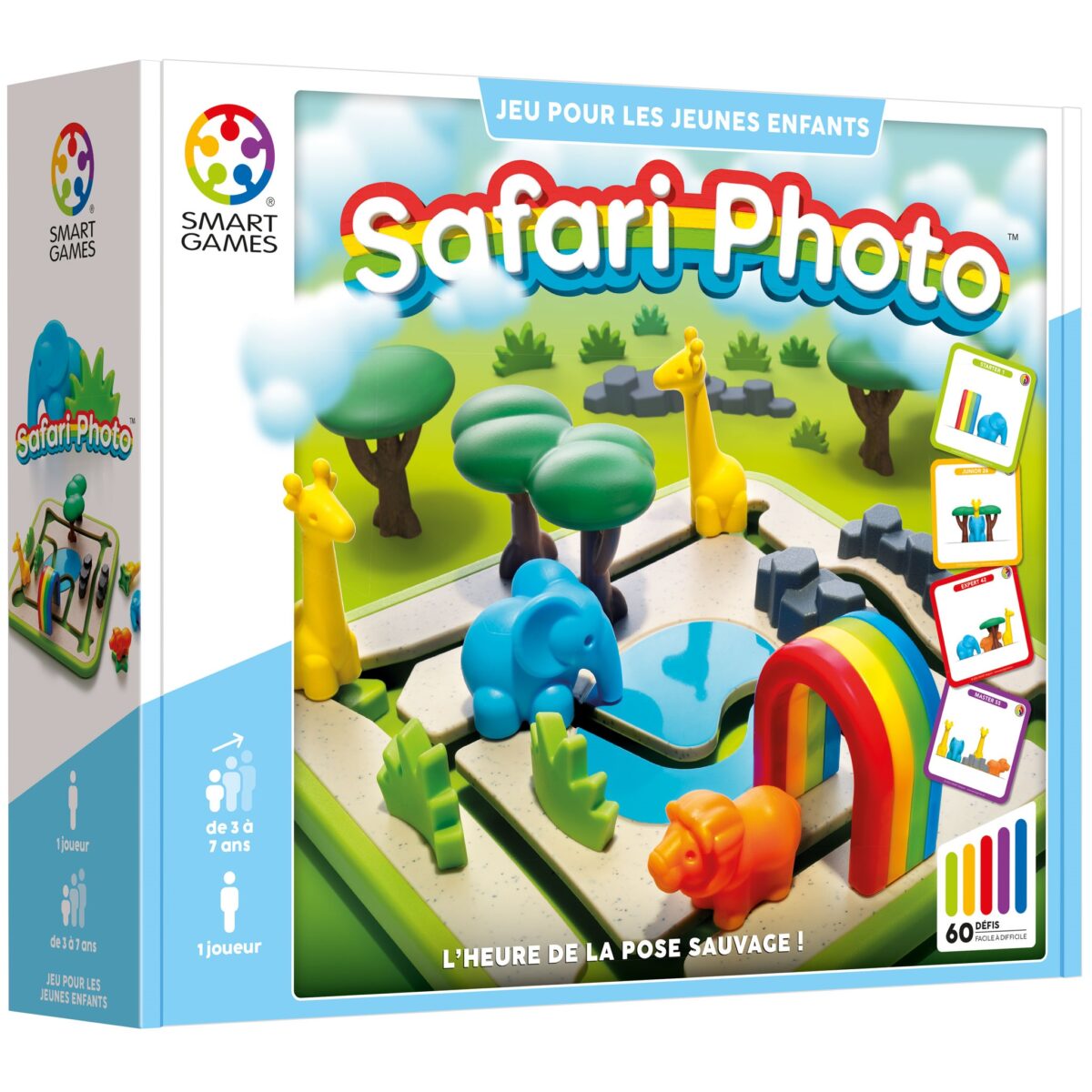 Trois, deux, un… on ne bouge plus ! Ces animaux sauvages adorent poser pour se faire prendre en photo ! Saurez-vous les placer aux bons endroits pour qu’ils apparaissent dans le cadre ? Rappelez-vous que le lion n’aime pas l’eau, l’éléphant ne peut pas passer entre les rochers et les girafes sont trop grandes pour passer sous les arbres. Un jeu d’apprentissage deux en un pour les petits qui leur proposera soit de déplacer les animaux dans la savane selon leur imagination, soit de résoudre les défis proposés. « Safari Photo » est un jeu pour appréhender les formes, ainsi que les notions de dessus, dessous, derrière, devant, à droite, à gauche… Observez les formes des pieds de jeu et suivez le chemin. Prêt pour votre premier safari photo ?