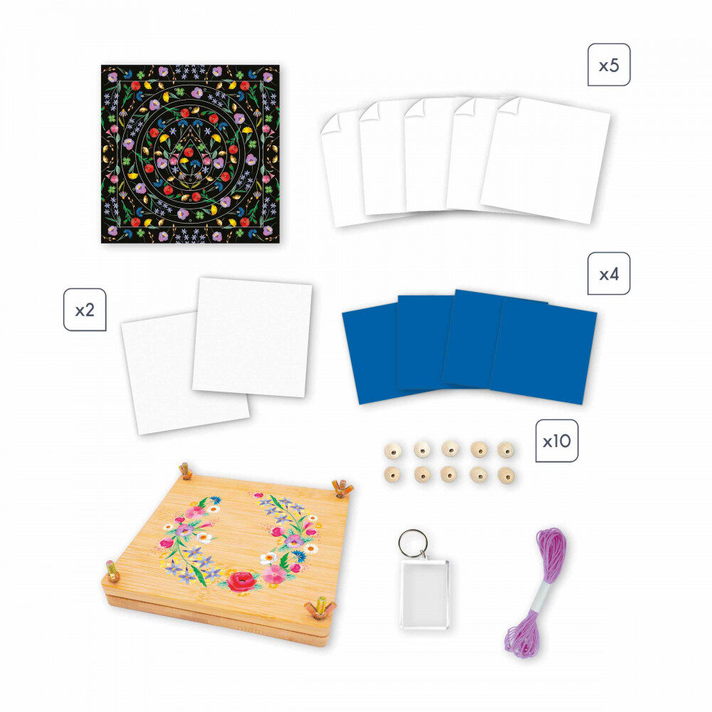 Colchique dans les prés … Voici une activité pour enfant romantique à souhait ! Pour les passionnés de nature et de déco, voici un kit créatif permettant de faire 6 jolies réalisations avec des fleurs qu’ils auront eux-mêmes séchées ! Pour une déco naturelle et fleurie à offrir, découvrez ce set idéal pour les enfants à partir de 8 ans. Grâce à la belle presse à fleurs en bois, les enfants pourront réaliser : un attrape-rêve, des marque-pages, un porte clés, des tableaux sur papier photosensible (qui permet de faire ressortir les contours des feuilles et des fleurs) et des tableaux en tataki zomé (technique d’impression). Un livret d’instructions permet de réaliser l’ensemble des décorations pas à pas. Le kit contient une très jolie presse à fleurs, 1 cadre en carton, 6 perles en bois, 3 feuilles de papier recyclé (tataki), 4 feuilles adhésives transparentes, 4 feuilles de papier photosensible, 1 planche imprimée prédécoupée, du fil de coton, et 1 porte clé. Il faut environ 3h20 pour réaliser toutes les activités.